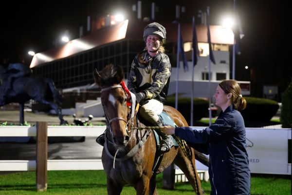Hun kjører på. Nå tar Nathalie Mortensen (Hesteguidens bilde i vinnerpaddocken sammen med Tearaway Two) en ny tur fra Skara, 33 mil med fire hester og høy stallform. Nathalie-hestene kommer til å sette farge på løpsdagen. Til sammen har de vunnet elleve løp i år.