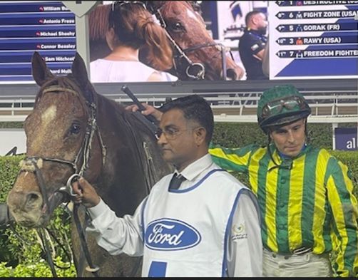 Stjernejockeyen fra Eiksmarka, treer i årets Longines World’s Best Jockey etter James McDonald og Mickael Barzalona, red et strålende løp. Finishen var av det kraftfulle slaget. På målstreken fanget William og Telemark en godtgående Khanjar, ridd av Antinio Fresu, Veronika Askes ektemann. Fresu vant senere Al Garhoud Sprint (L) med en 10-oddser.