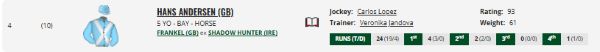 Nummer 1, 2 og 4 på denne listen er irskfødte, Daryz er født i Frankrike, Forever Young er japanskfødt og Sovereignty er Born in the U.S.A. De fire førstnevnte har fått formtallet i gressløp, de to sistnevnte i løp på dirt.