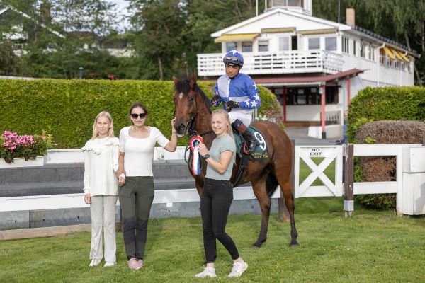 * 6-årige Diggit (Hesteguidens bilde fra vinnerpaddocken, Carlso Lopez er rytter) har vunnet åtte løp; fire på gress og fire på dirt som er underlaget torsdag. Ida Tandberg har tatt halvpartene av seirene, Carlos Lopez tre – og Nora Hagelund Holm var styrmann da Diggit tok sin eneste seier i 2025. Fjorårssesongen var ingen suksess, men det hadde sine årsaker. Tonje Guttulsrød forteller: - Han fikk tannbyll-problemer på våren, og hovbeinsbrudd og løs beinbit fant vi i slutten av august. Han ble behandlet for dette, og «Digg» var i orden når sesongen nærmet seg slutten. Har vært i form siden, sier Tonje som oppsummerer: