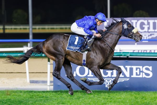 Storfavoritten og den superspennende 4-åringen Opera Ballo (Charlie Appleby/Godolphin, bilde fra emiratesracing.com/Race Photo under) innfridde lett i Jebel Hatta (Gr. 1, 1800 meter gress), Cover Up (Simon & Ed Crisford) vant et Gruppe 2-løp, Drews Gold seiret for William i Gruppe 3. UAE 2000 Guineas ble vunnet av Six Speed (Bhupat Seemar, William Buick vant med denne sist), ridd av Mickael Barzalona med William Buick og Devon Island på sølvplass. Seieren i Jebel Hatta var Williams 121. i et Gruppe 1-løp. Opera Ballo er spesiell - og i ferd med å bli en favoritthest hos både William Buick og Charlie Appleby - som faren Ghaiyyath, hesten med det enorme steget, var det (født 2015). Spørsmålet er om Opera Ballo står 2400 meter? Ghaiyyath, ener på verdensrankingen i sin siste sesong som løpshest med Timeform 133 i 2020, gjorde det ikke på "very soft ground". Han ledet Prix de l'Arc i 2029 da 500 meter gjenstod, men endte som nummer ti i et løp som ble vunnet av tyske Waldgeist.